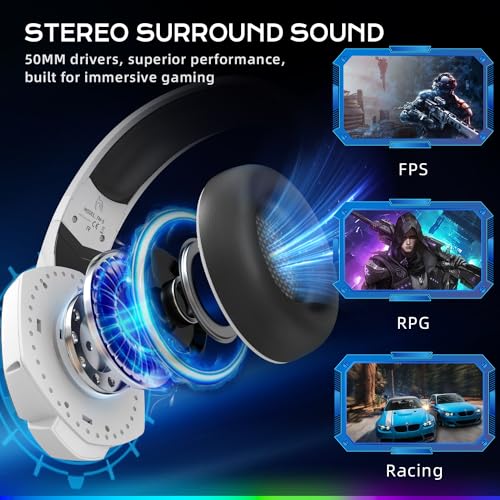 【Over-Ear Headphones Designed for Comfort】PS5 headset with lightweight + soft protein leather + breathability memory foam pads + adjustable headband design, feel comfy fit and painless even long time gaming. Immersed in the game world, couldn’t let pain wake you mind.