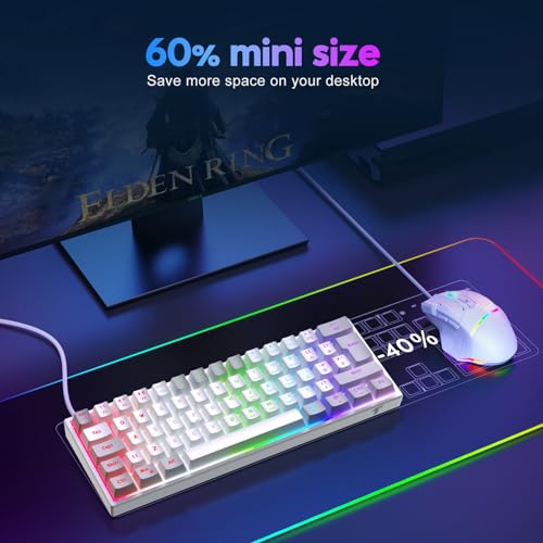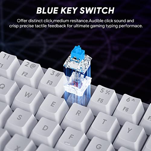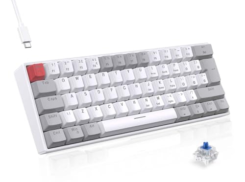 TECURS Gaming Keyboard Mechanical Keyboard Gamer 60% UK-Layout, LED Backlit,Blue Switch, Wired Mini Keyboard for PC/Windows/Laptop/PS4/Xbox, White and Grey