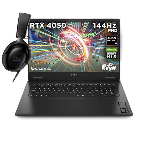 HP Omen 17″ Gaming Laptop and HyperX Cloud III Wired Headset Bundle, AMD Ryzen 5-8645HS, AI Enhanced, 16 GB RAM, 1TB SSD, NVIDIA GeForce RTX 4050 Graphics, FHD Display, 144Hz, Black, 17-db0015sa