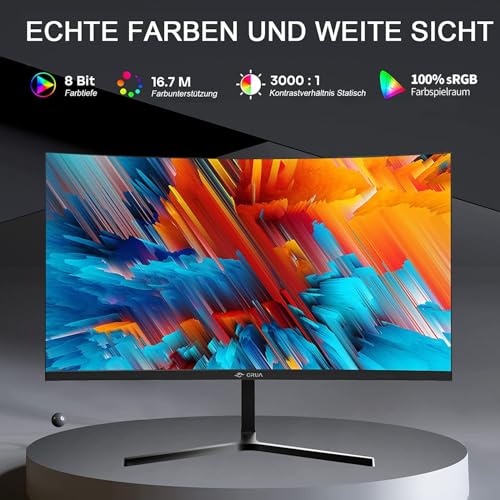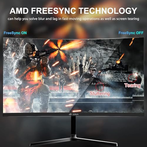 CRUA 24 Inch 180Hz,Curved Gaming Monitor, FHD 1080P, Frameless Design, AMD FreeSync, Low Motion Blur, Eye Care, DisplayPort, HDMI, Wall Mountable