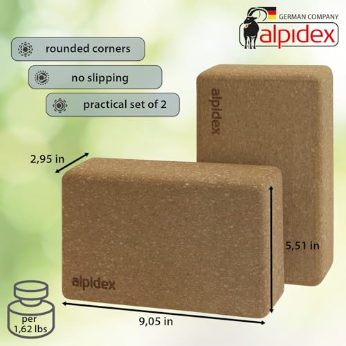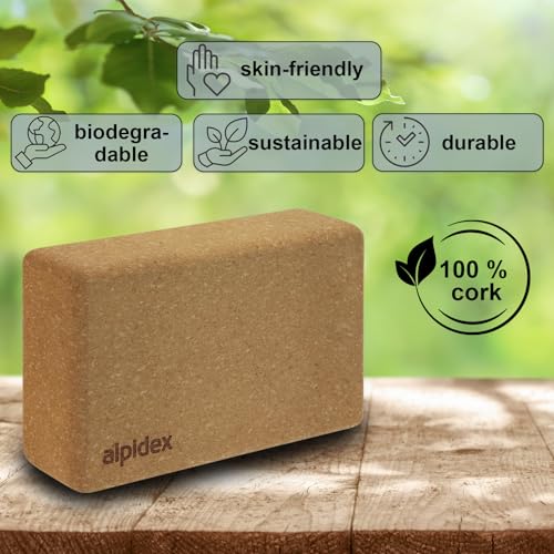 ALPIDEX Yoga block set of 2 incl. e-book with 100 exercises ecological and sustainable natural cork from Portugal cork block yoga pilates fitness brick