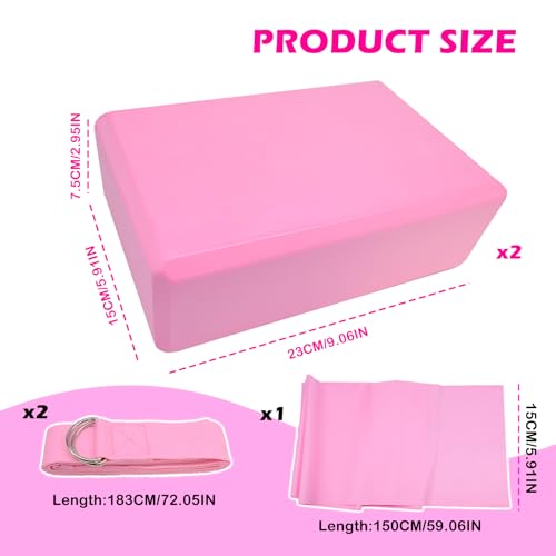 Convenient Size:Yoga bricks measure 23 x 15 x 7.5 cm (9 x 5.9 x 2.9 in), yoga stretch straps measure 183 x 3.8 cm (72 x 1.49 in), and Yoga band measure 150 x 15 cm (59 x 5.9 in). They help improve deep balance, enhance strength and flexibility