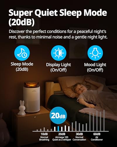 【 WHISPER-QUIET COMFORT FOR UNDISTURBED SLEEP 】 Operates at just 20dB – softer than a whisper, ideal for uninterrupted rest. The gentle mood light creates a calm atmosphere, and all indicator and button lights can be turned off for total darkness.