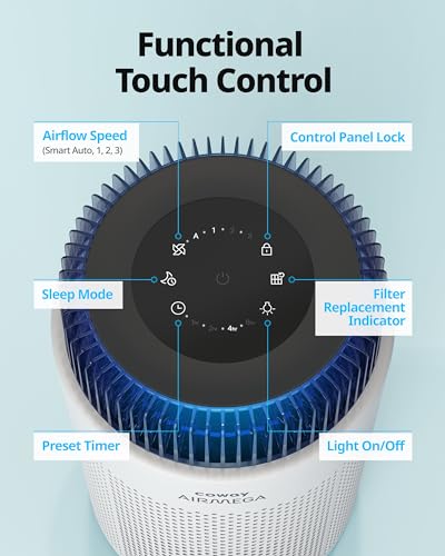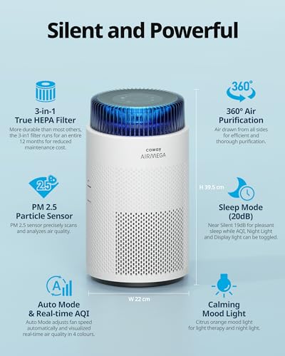 COWAY Air Purifier for Home Bedroom, Super Quiet Sleep Mode, Mood Light, Energy Star, Removes up to 99.999% of Harmful Particles down to 0.01 µm for Allergy Dust Pollen, CADR 244 m³/h – Airmega 100