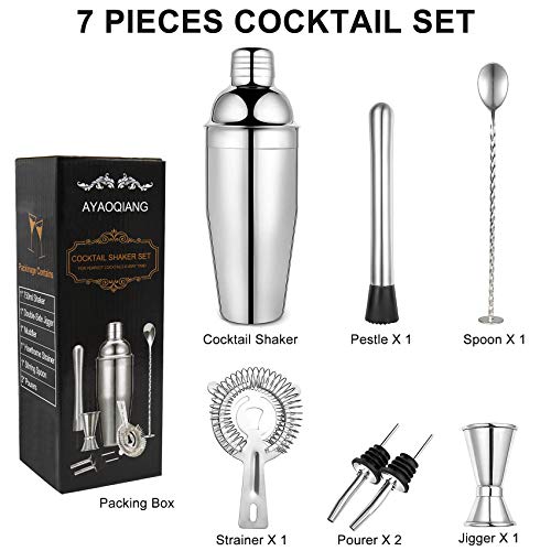 Cocktail Shakers Set,7 Pieces Cocktail Making Kit,Cocktail Shaker Set 750ml Stainless Steel Bar Tool Set Bartender Kit with Double Jigger,Muddler,Strainer,Pourers,Mixing Spoon