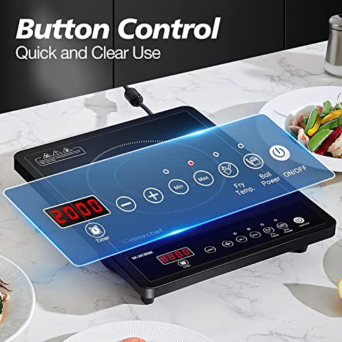 🍟 [Many scenarios for hassle-free cooking]. Amzchef portable induction hob with its elegant design, easy storage and compact construction. Perfect for families, camping and relaxing, this single induction hob can also be used ideally on a balcony or terrace as well as in an outdoor kitchen. With sensitive push buttons that are safe against accidental touches, the single induction hob enhances its practicality. Enjoy hassle-free cooking with the adjustable timer is up to 3 hours timer.