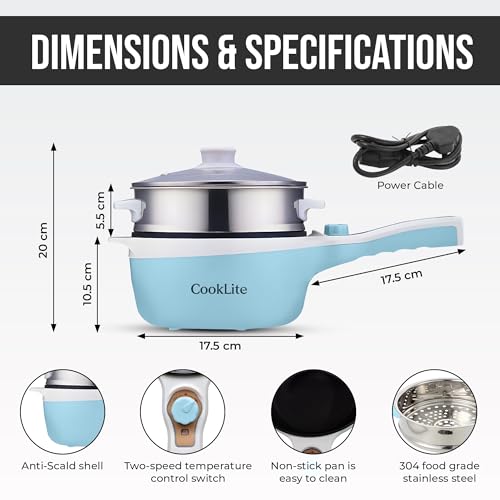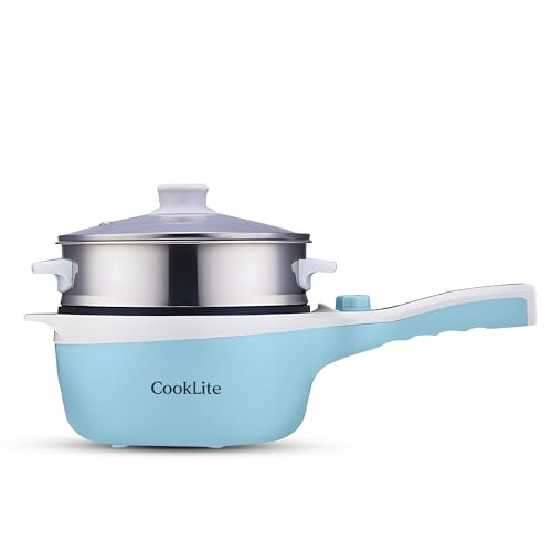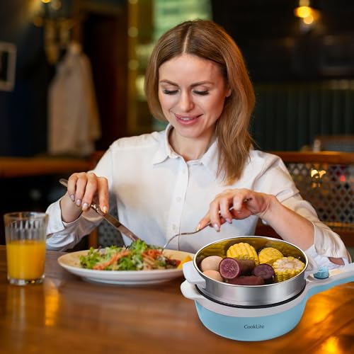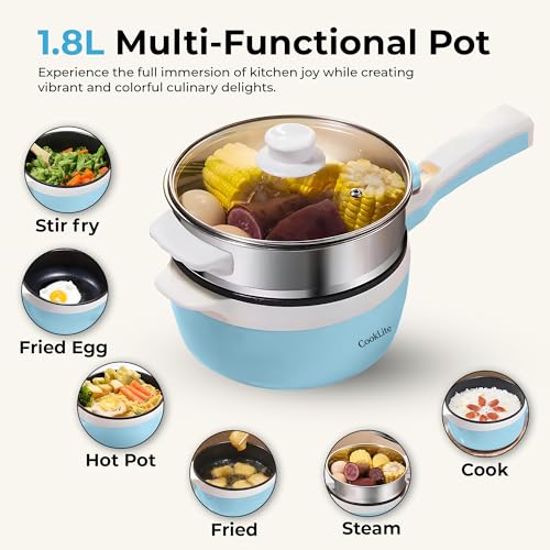 Electric Hot Pot with Steamer: 1.8L Capacity, Multi-Functionality, and Easy Cooking! (Blue)