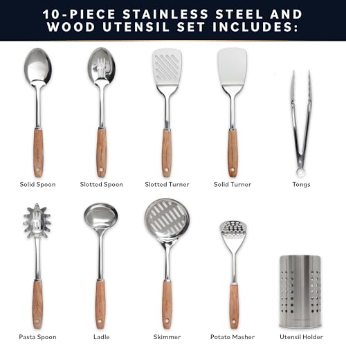 “Home Hero Stainless Steel & Wood 10pc Utensil Set