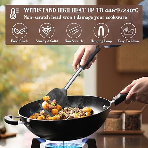 【High Heat Withstand】 Our silicone kitchen utensils set can withstand high temperature up to 446°F/230°C, Which makes it won’t melt or leach harmful substances into your food even under high heat, Anti-scalding silicone sleeve covers on the handle to avoid your hands from being burned