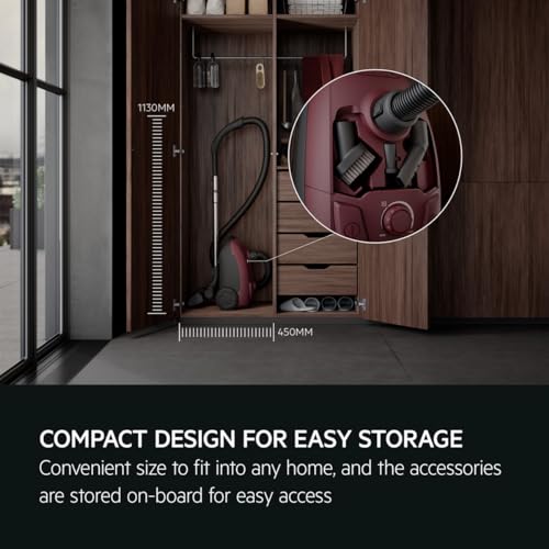 COMPACT, EASY TO USE AND PERFORMANT: Introducing our compact 5000 Bagged Cleaner, which efficiently removes dust and dirt from all surfaces. Seamlessly transition from floor to carpet with the AllFloor nozzle while onboard storage keeps your accessories within easy reach.