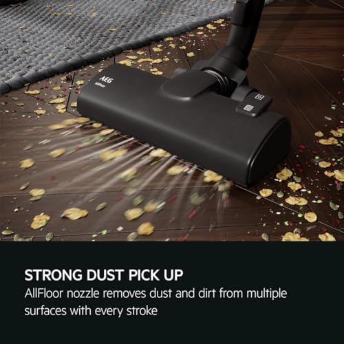 STRONG PERFORMANCE WITH EVERY STROKE: With a combination of strong suction power and the new AllFloor nozzle, this vacuum efficiently removes dust and dirt from hard floors and carpets. Plus, you can change the cleaning mode on the nozzle with your foot, without having to bend down.