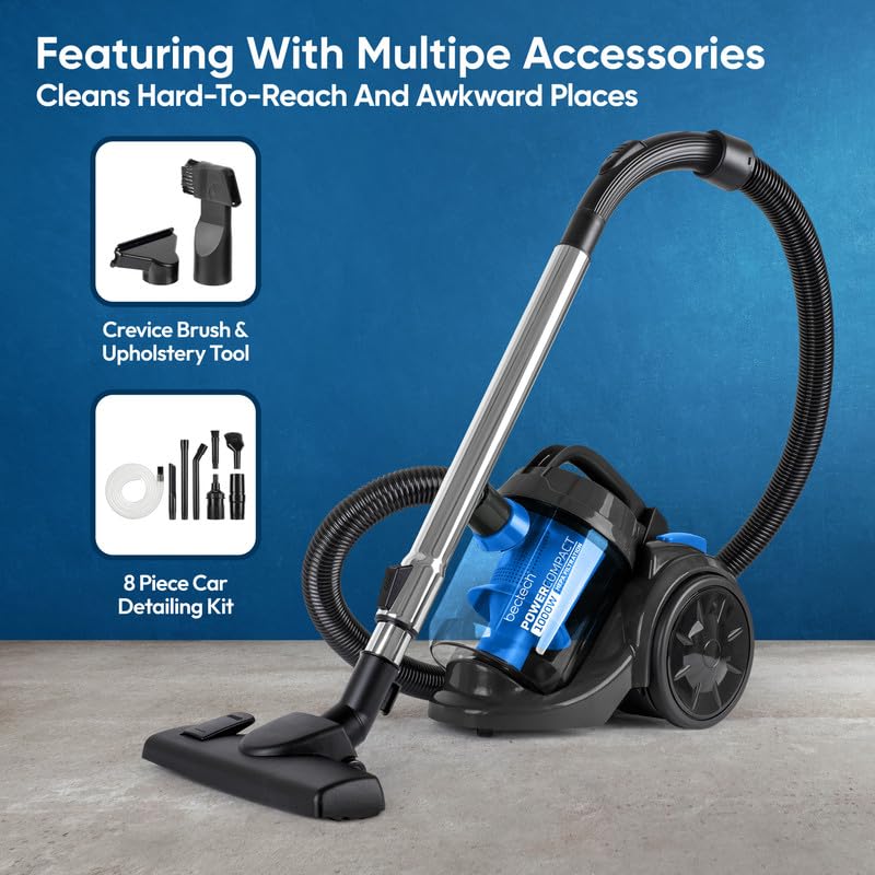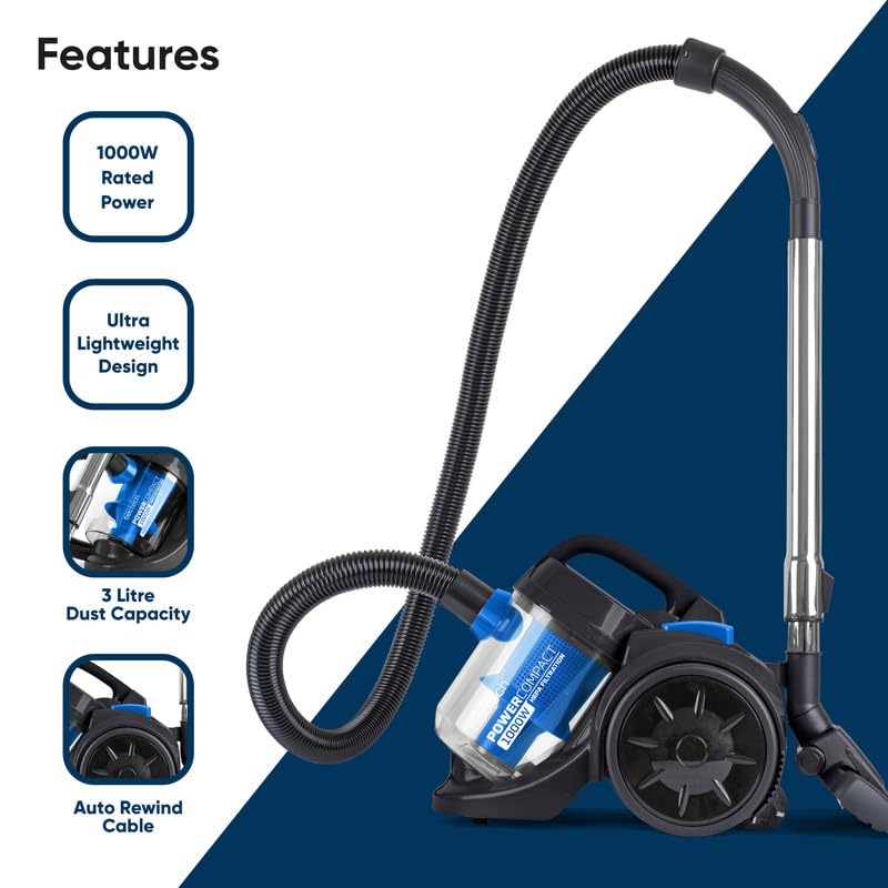 Powerful Cylinder Vacuum Cleaner 1000W | High Efficiency Motor | Includes Car Cleaning Kit | Compact 3 Litre Cleaner Multi-Tool | Pet Hair | Bagless Vacuum Cleaner