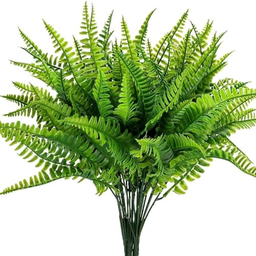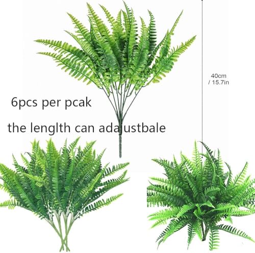 GJFWQC 6 Pcs Artificial Plants, Plastic Greening Shrubs, UV Resistant Plants, Plastic Ferns for Indoor and Outdoor Home Garden Decoration