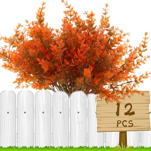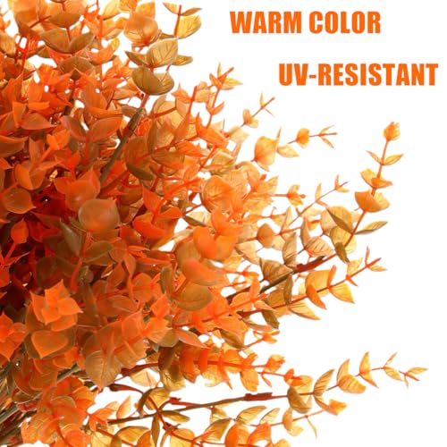 HBell 12Pcs Autumn Artificial Plants,Outdoors Artificial Fall Plants,UV-Resistant Shrubs Plants Autumn Plastic Shrubs for Fall Home Garden Porch Decoration Thanksgiving Halloween Decor (Autumn green)