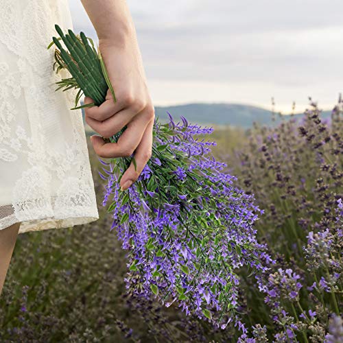【Premium Material】The artificial lavender flowers are made of high-quality plastic that simulates the feel of real lavenders, which is durable for long time use. The artificial plants are also harmless to your families health. These bright purple flowers will remain vivid and not wither with continued use.