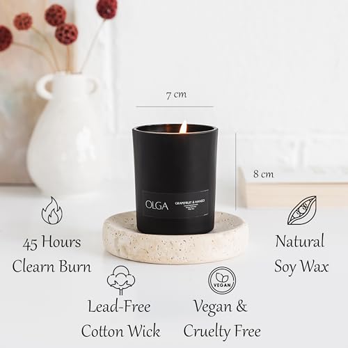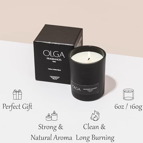 OLGA Scented Candles Gifts for Women – 6oz Grapefruit Mango Black Candle Gift Set Natural Soy Wax – 160g Luxury Matte Black Jar Aromatherapy Candles Long Burning – 45h Strong Clean Burn Candle Sets