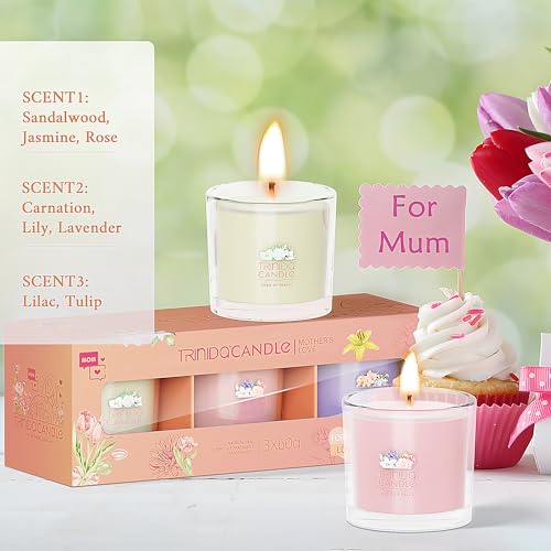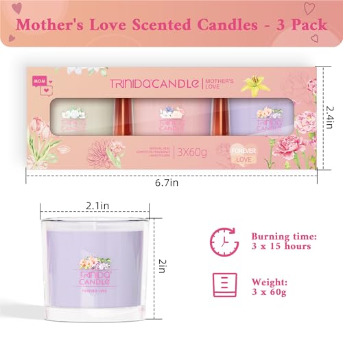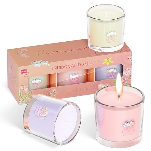 TRINIDa Candles Gifts for Women, 3 Scented Candles Votive Set 45Hrs, Birthday Gifts for Women, Pink, Purple and White
