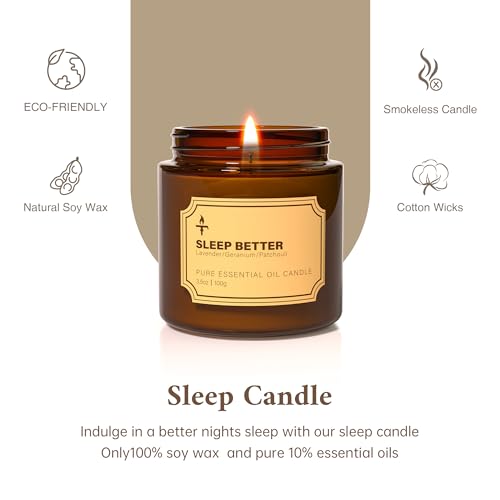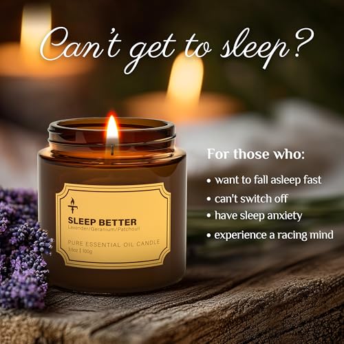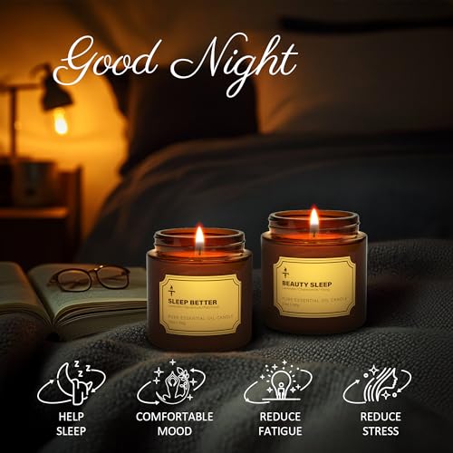 PERFECT ACCOMPANIMENT OF YOUR DAILY SLEEPING RITUAL: Lavender has been proven in countless studies to calm and relax the mind and body when inhaled. Chamomile relieves anxiety and helps to relax tense skin and muscles. Light up our sleep bedtime candles for several hours before turning to bed every night. Create a relaxed atmosphere and mood to help sleep