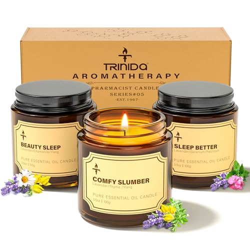TRINIDa Sleep Candles Gifts for Women, 3 Pack 3.5oz Lavender Candle Gift Set for Anxiety, Aromatherapy Candle for Stress Relief and Relaxation, 100 Hrs Long Burning, Birthday Gifts for Women