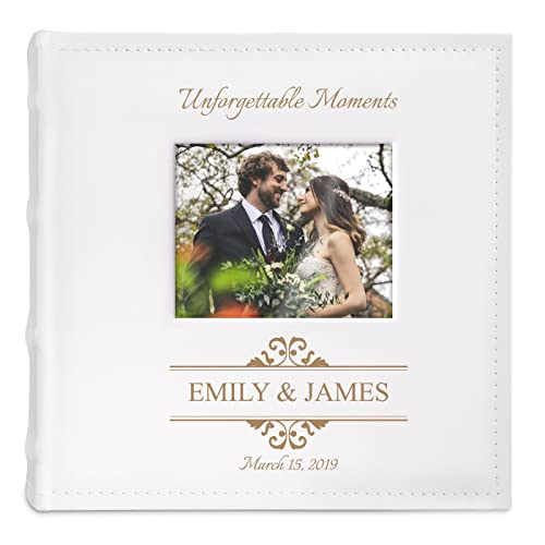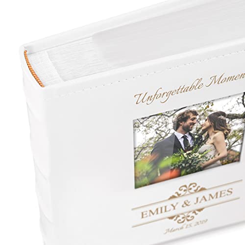 Maverton Slip-In Photo Album for couples – Engravable cover with a photo frame- White leatherette- 100 pages to fill in with 200 images- Personalized album for parents – moments