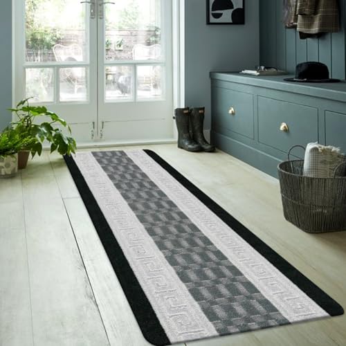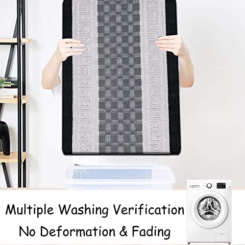 Fit Even Gel Back Runner Rug – Large Washable Non-Slip Carpet for Living Room, Bedroom, Lounge, Dining, Kitchen, Modern Indoor Long Floor Rug (Black Grey, 60×110 cm)