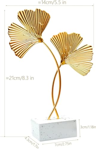 Metal Ginkgo Leaf Home Decor Statue, Modern Creative Collectible Figurines Decorative for Coffee Table Desktop Shelf Centerpiece, Gold Ginkgo Leaf Art Sculpture for Dining Room, Office, Study, Studio Decor Ornaments