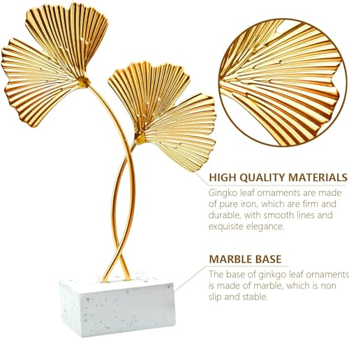 JLNGTHONG Metal Ginkgo Leaf Ornaments, Gold Ginkgo Leaf Desktop Decoration Sculpture, Modern Creative Home Décor Accents Statue for Office, Bedroom, Bookshelf