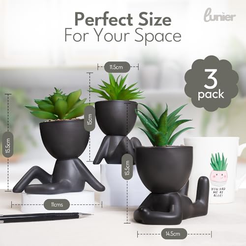 LUNIER Seated Succulent Set (Set of 3) | Porcelain Pots with Small Artificial Plants (Indoor) | Faux Plant for Indoors | Bedroom, Office Desk, Bathroom Plant-Set | Small Fake Plants, Shelf Decorations