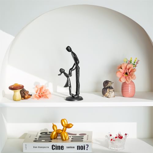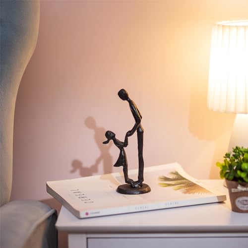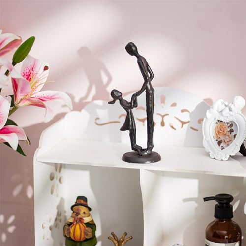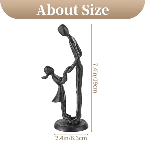 HANDCRAFTED DAD AND DAUGHTER SCULPTURE – Sziqiqi father and daughter statue is handcrafted from premium cast iron, this iron sculpture boasts a captivating black matte texture. Its robust build not only radiates strength but also promises years of cherished memories. The bottom of this metal sculpture has a velvet pad ensures care for your cherished table surfaces.