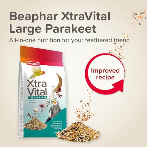 Beaphar | XtraVital Large Parakeet Bird Food | Complete food with Raisins, Rose Hip, Echinacea, & Egg Food | Rich in Vitamins & Minerals for Optimum Health | 500g