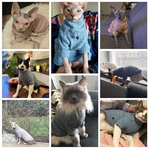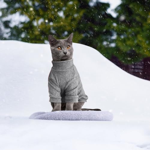 Oslueidy Sphynx Cat Clothes, Hairless Cat Vest Turtleneck Sweater, Kitten Puppy Pullover Shirt with Sleeves, Cat Pajamas Jumper for Sphynx, Cornish Rex, Devon Rex, Peterbald (Grey, XL)