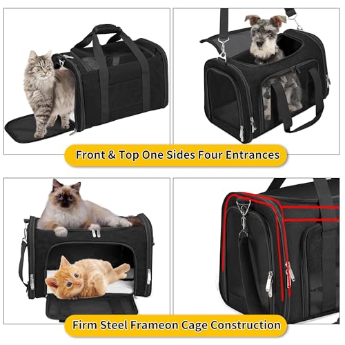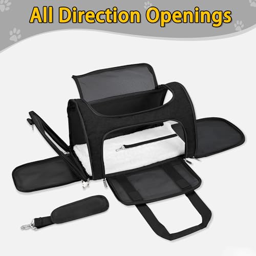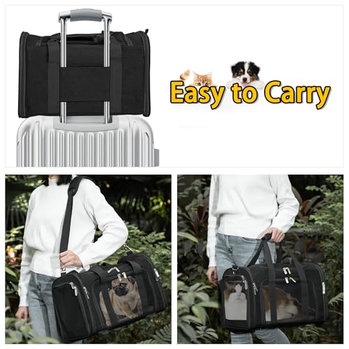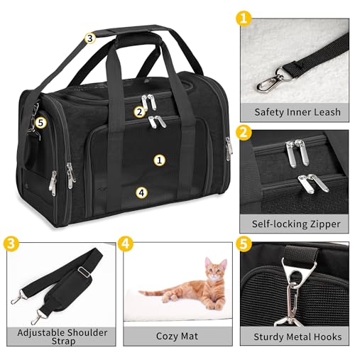 Soft Sided Cat/Pet/Dog Carrier Bag,Portable Foldable Pets Travel Carriers For Cats/Dogs With Shoulder Strap & Removable Mat,Durable Puppy Basket of 16 lbs Airline Approved – Black