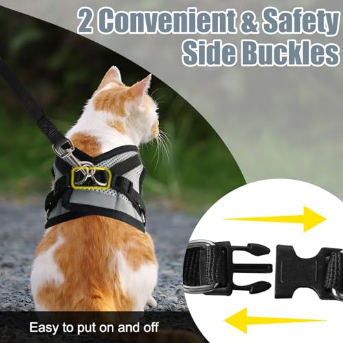 Escape-Proof and Easy to Use: Retractable cat lead and harness set designed with 2 snap side buckles, this kitten harness and lead set is effortless to put on and take off. The 2 adjustable points allow for a perfect fit, ensuring your cat can move freely without any restrictions. The cat lead for garden makes it easy for your kitty to explore safely, making it perfect for daily walks, training, or outdoor play