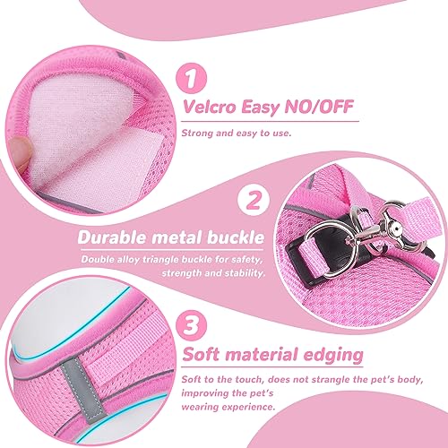 【360 Degree Reflective Tape Design】The escape-proof adjustable soft mesh vest harnesses has reflective tapes on the chest and edges, especially the 360 degree reflective tape design on the edges, which makes cats more visible in low light conditions and safety when driving at night improved.