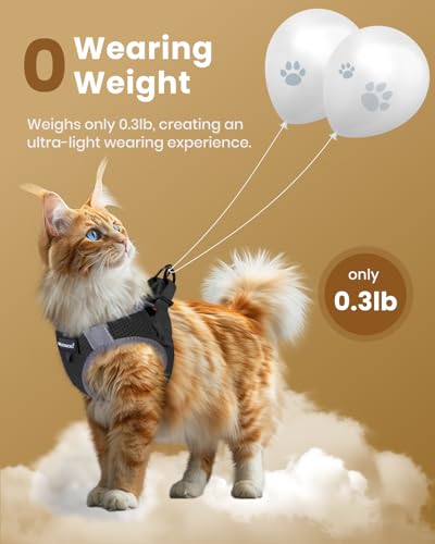 🐱 Cat Safety Harness: Not like a heavy buckle, the buckle in our kitten harness is a lightweight plastic rotating buckle. Flexible rotation, easy and convenient for cat to wear and walk. For additional, our escape proof cat harness has reflective strips design, which allow your cat walking safely at night.