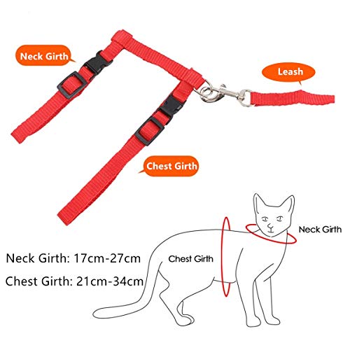 Adjustable: Neck girth adjustable from 17 cm to 27 cm; chest girth adjustable from 21cm to 34cm; leash length: 1.20 m; rope width 1cm / 0.39″. To make sure the harness fit your cat well