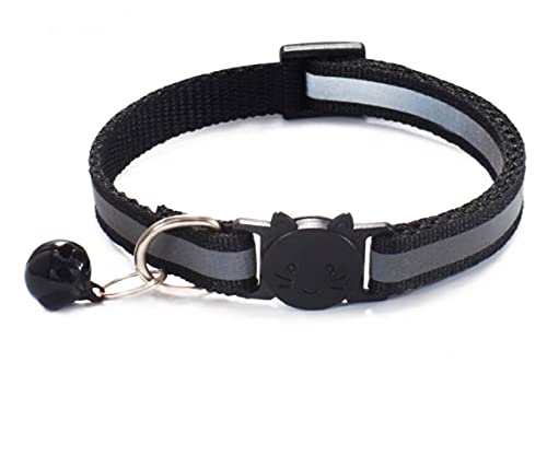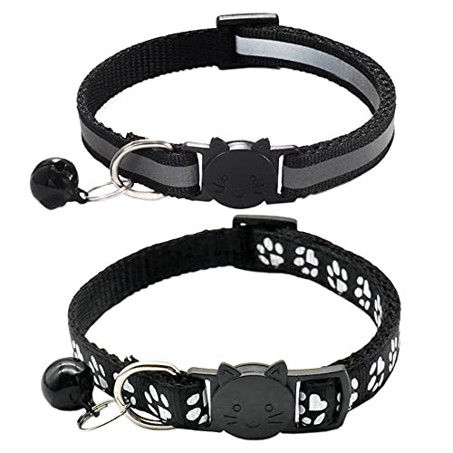 Qinao 2Pack Cat Collars Quick Release Reflective Kitten Collar with Bell & Safety Release (Black)