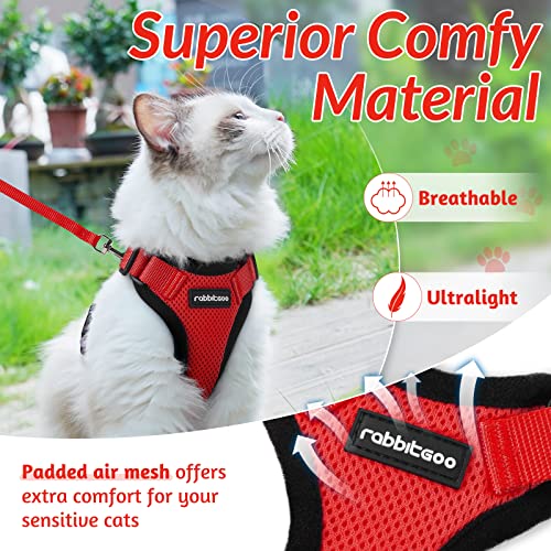 rabbitgoo Cat Harness and Lead Set, Escape Proof Kitten Harness with Leash, Metal Ring, Lightweight Soft, Reflective Adjustable Vest for Small Cat Walking Travel XS, Red