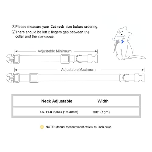 【Easy to Adjust】📏 With a length of 19-30 cm (7.5-11.8 inches) and a width of 1 cm (3/8 inches), our collar is suitable for most cats, kittens, and small puppies. Before making a purchase, be sure to measure your cat’s neck size to ensure the perfect fit.