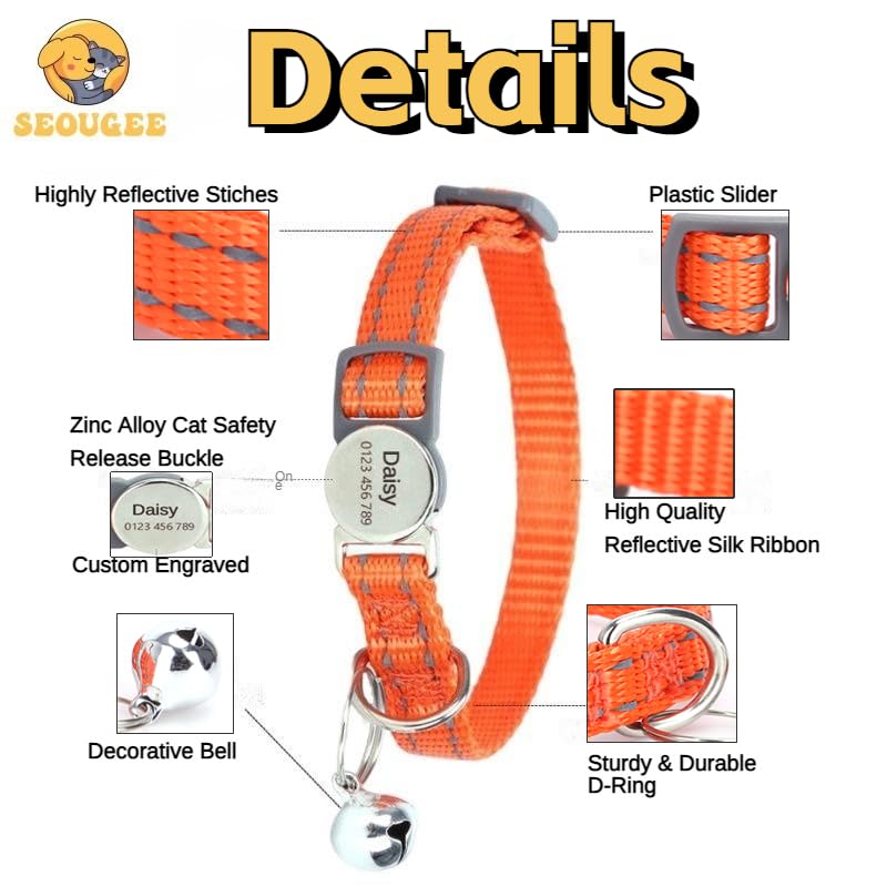 【Highly Reflective】🌟 Our nylon cat collar features a reflective strip that shines bright in the dark, allowing you to quickly locate your kitten and ensure their safety during nighttime adventures.