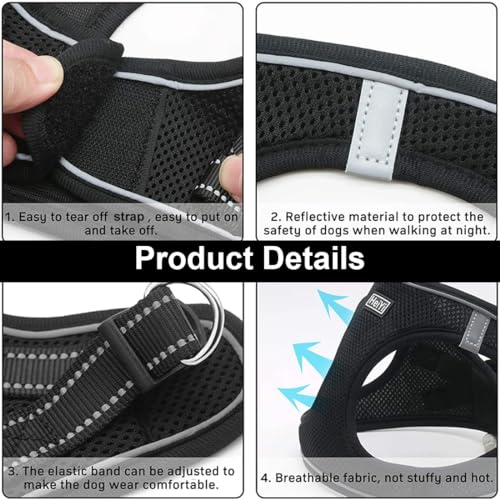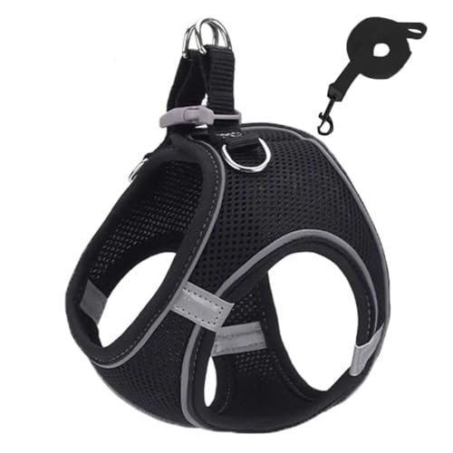 ZYBHMJE Cat Harness and Lead Set – Escape Proof, Breathable, Reflective Strips – Small to Medium (Chest: 30-46cm), Black