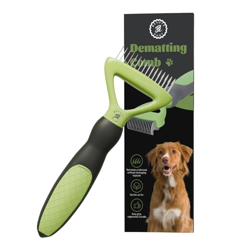 Professional Pet Grooming Brush: Demattig comb helps to remove undercoats and loose hair without pulling fur or scratching pet skin.