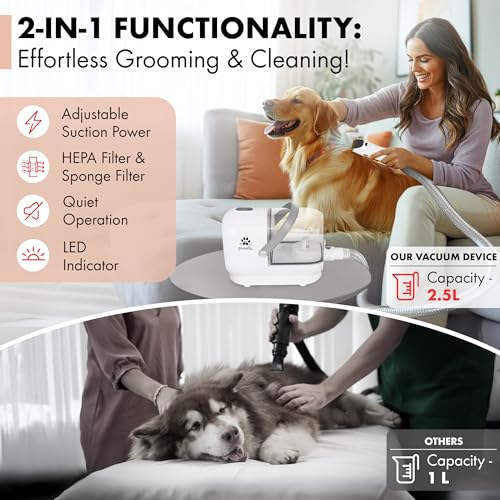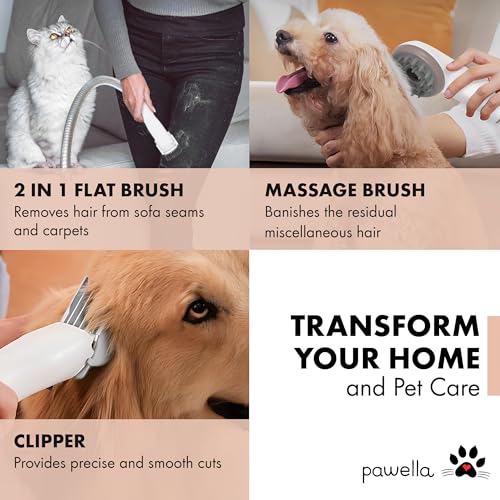 Pawella Pet Grooming Kit with Vacuum, Dog Clippers, Suction 99% Pet Hair, Professional Pet Grooming Kit with 7 Proven Tools for Shedding Grooming, Cat Dog Grooming Vacuum Kit, 2.5L