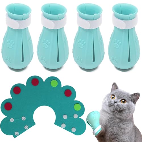 SKJAXF 2 Set Anti-Scratch Cat Bath, Cat Claw Caps 4Pcs, 1Pcs Sunflower Headgear, Adjustable Silicone Cat Claw Covers, Cat Bathing Kit, Pet Supplies For Cat Grooming, Bathing, Shaving (Green And Blue)