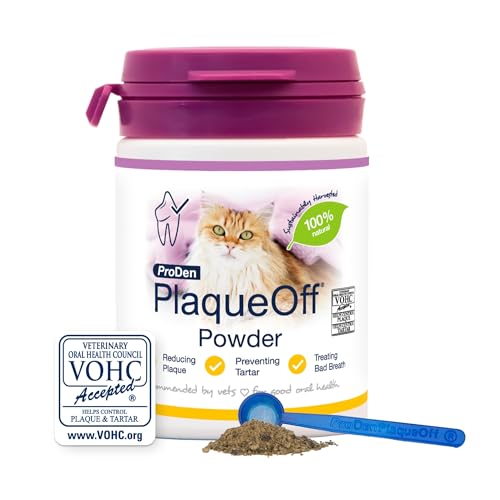 ProDen Plague Off Powder for Cats, 100% Natural Tooth Care Powder, Protects Against Bad Breath, Helps with Tartar and Plaque, Pack of 1 – 40g