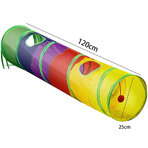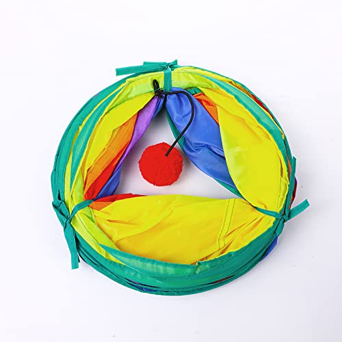 【Colourful Tunnel】: Rainbow-like colors can more arouse your kitten’s interest. gives your cats more interactive fun than cat tents, cubes, scratch posts, feathers, and mouse toys.