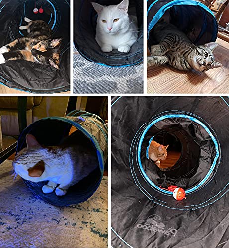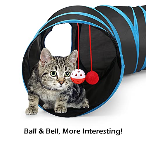 Pawaboo Cat Toys – S-Shaped Cat Tunnel Tube, 25x97cm, Extensible & Collapsible Cat Play Tent with Interactive Maze, Balls & Bells for Kittens & Small Animals, Blue