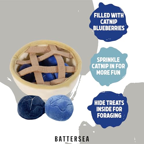 Rosewood Battersea Blueberry Snuffle Pie Cat Toy, Cat Snuffle Toy, Catnip Blueberries in Plush Pie Toy, Catnip Toy, Blue, 12.5cm