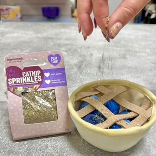ENGAGE YOUR CAT EVEN FURTHER: Sprinkle catnip into the pie, enhancing your cat’s engagement and excitement! Adding catnip to the toy stimulates your cat’s senses and encourages playful and active behavior, turning the snuffle pie into an irresistible adventure. As your cat forages for the hidden blueberry ball toys, the enticing aroma of catnip keeps them intrigued and entertained for longer periods.