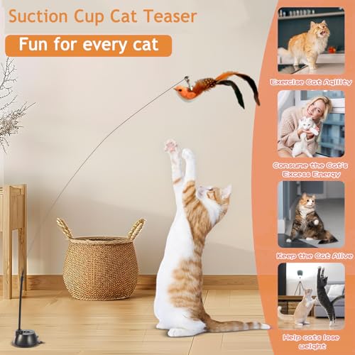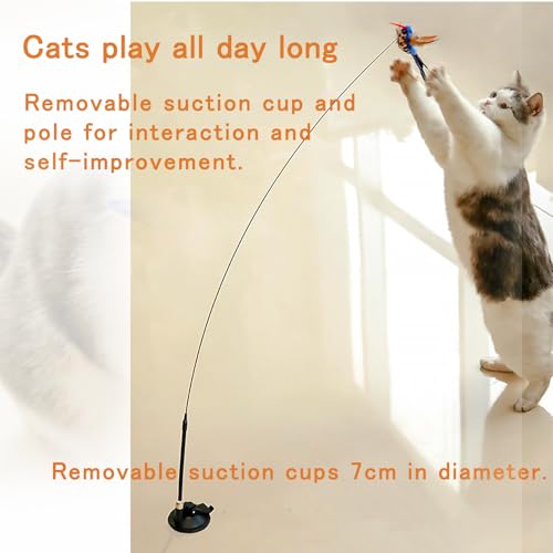【2 Interactive Modes】Manual and automatic interactive modes of cat feather toys. By holding the cat wand, you can interact and play with your cats directly or you can insert the wand back to the suction cup and let the cat enjoy self-entertainment.